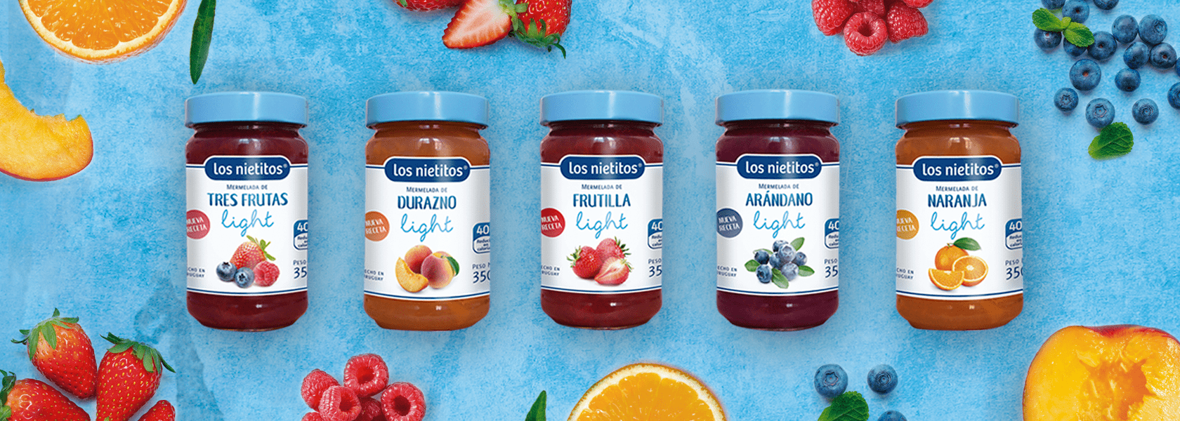 Te presentamos la renovada línea de mermeladas light, 40 % reducidas en calorías, sin aditivos químicos ni edulcorante.